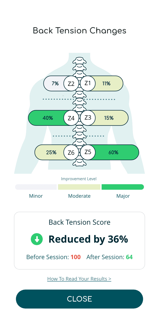 BackHug measures back tension before and after each session, giving you clear feedback on how your body is benefiting. Track progress over time and understand the real impact of your treatment.