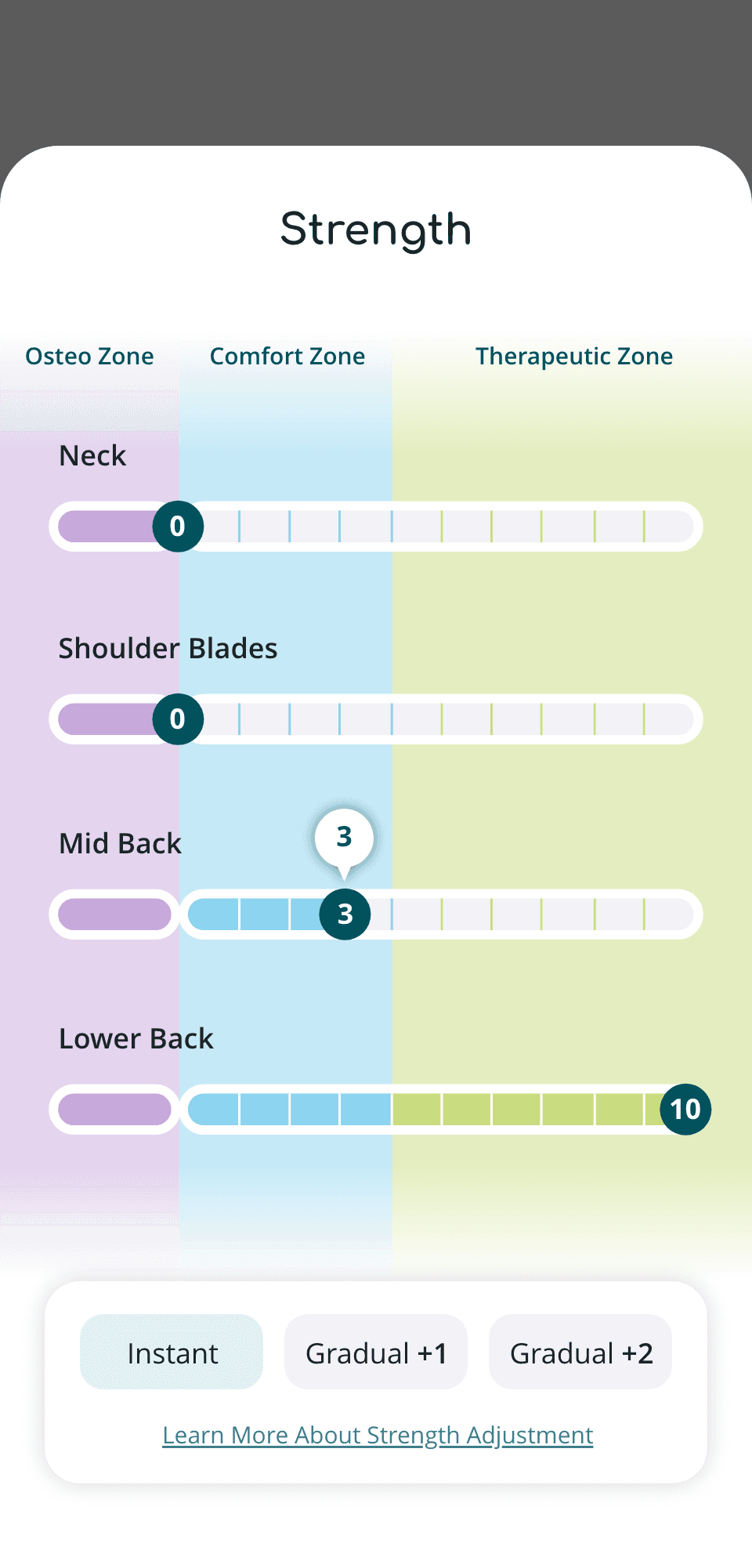 Adjust strength, speed, heat, and focus areas in real time during your session. Make every treatment comfortable, purposeful, and exactly right for how you feel that day.